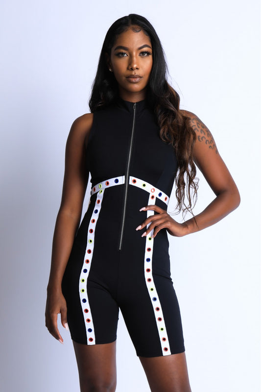 Mosaic Pattern Color Block Tie Detailed Jumpsuit